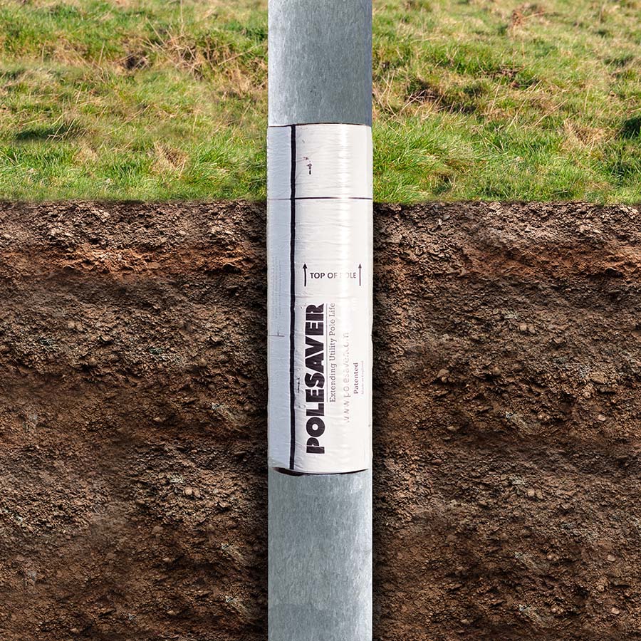 Polesaver Rot-Guard™ is a proven, ground-line barrier product which protects steel utility poles from the damaging effects of corrosion.